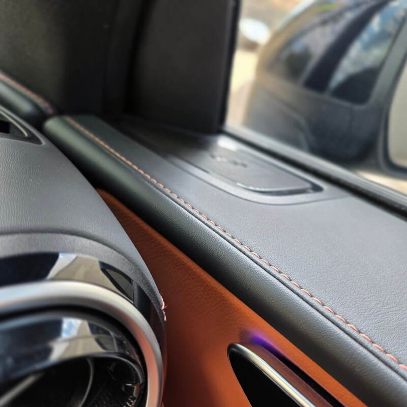 • Interior de cuero napa marrón Siena con diseño AMG Premium Plus